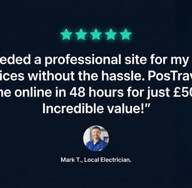 We challenge the status quo. Most agencies overcharge for manual setup and expensive meetings. PosTrav utilizes SEO-optimized templates and an efficient, automated workflow to eliminate upfront coding costs. Your £50 covers the fundamental launch: domain and hosting setup for the first year. We focus on your long-term success, prioritizing seamless maintenance and scalable growth services—where our true partnership begins.